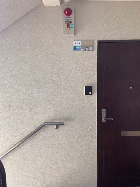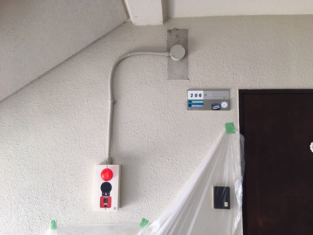 非常警報設備が、写真のように玄関のドアよりも上についてありました。
